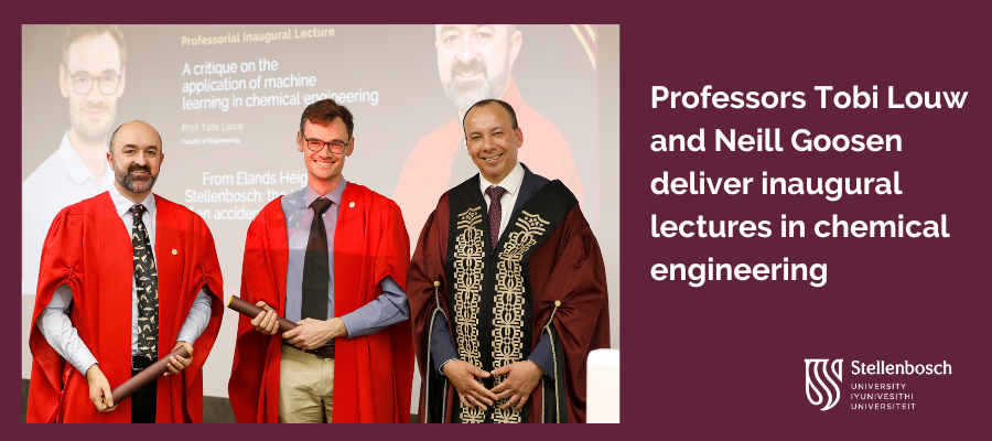 On 19 August 2025, Professors Tobi Louw and Neill Goosen of Stellenbosch University’s Department of Chemical Engineering both delivered their inaugural lectures. Presented on the same evening, the lectures highlighted