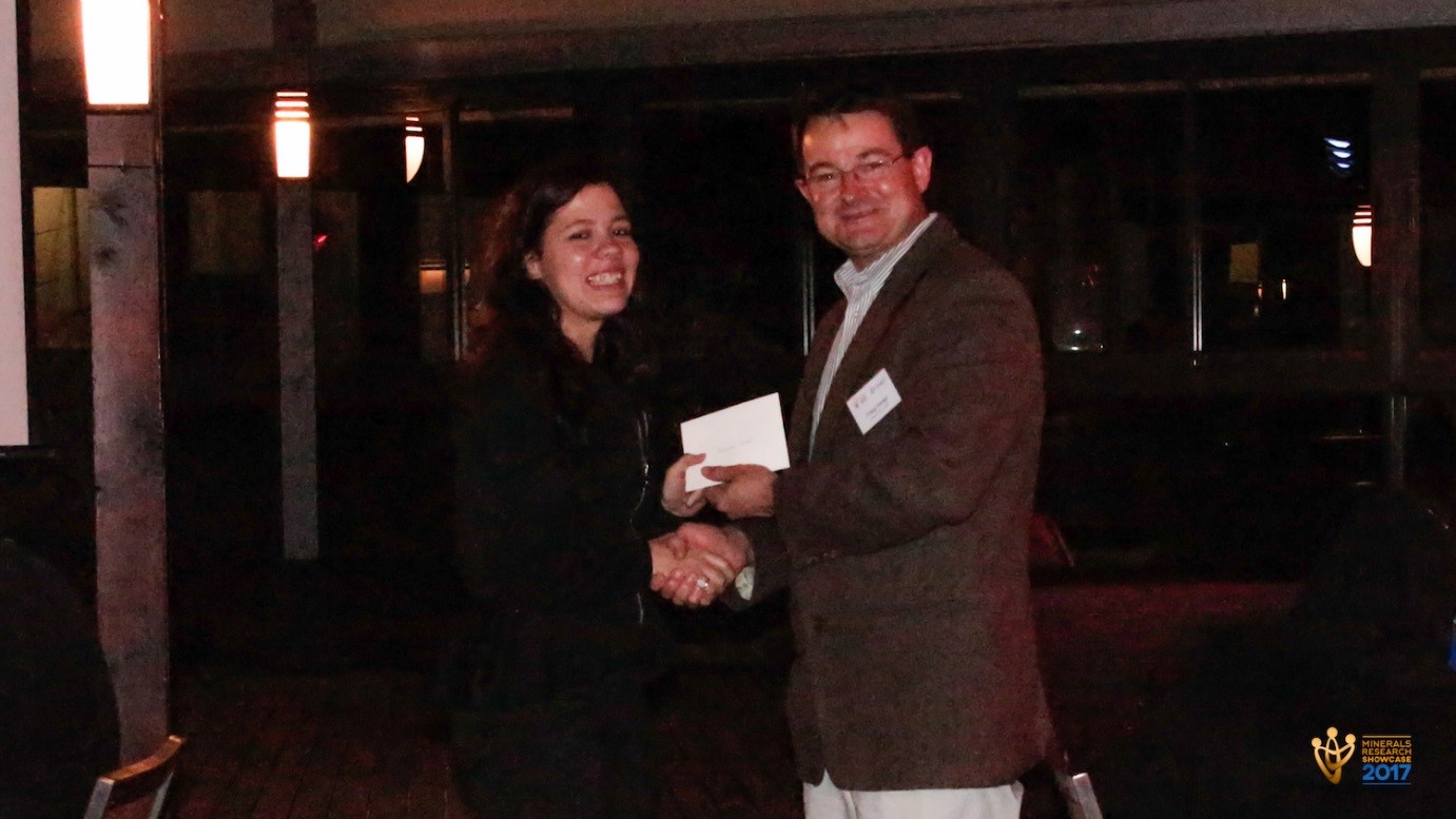 - Marzahn Theart receiving her prize from the outgoing SAIMM (Western Cape Bracnh) president Mr Craig Sweet